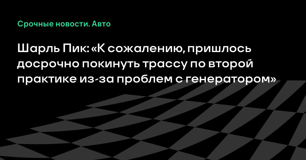 Шарль Пик: «К сожалению, пришлось досрочно покинуть трассу по второй практике из-за проблем с генератором»