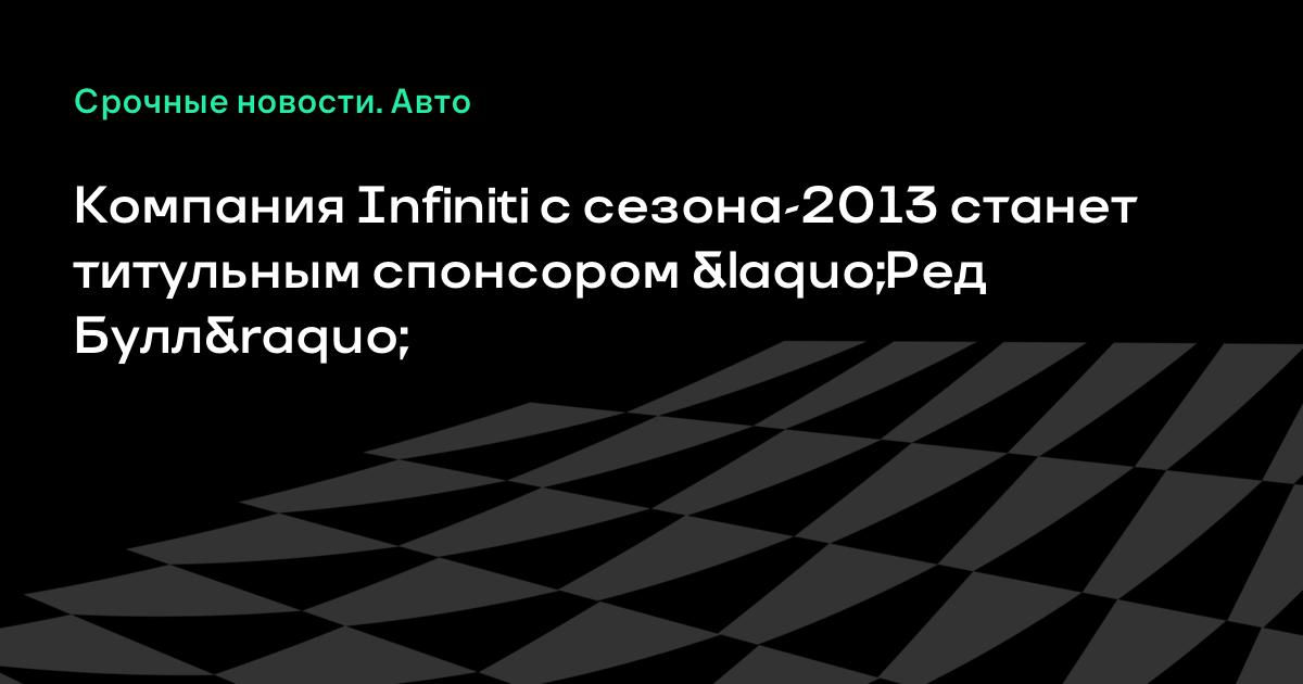 Японский автопроизводитель Infiniti решил расширить свое сотрудничество с командой «Формулы-1» «Ред Булл» и со следующего года станет титульным спонсором австрийской конюшни. Соответственно официальное название команды с сезона-2013 изменится на «Infiniti Red Bull Racing». Новое соглашение между сторонами рассчитано на четыре года.