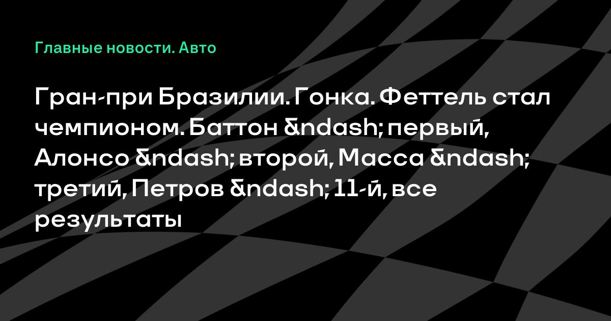 Гран-при Бразилии. Гонка. Феттель стал чемпионом. Баттон – первый, Алонсо – второй, Масса – третий, Петров – 11-й, все результаты