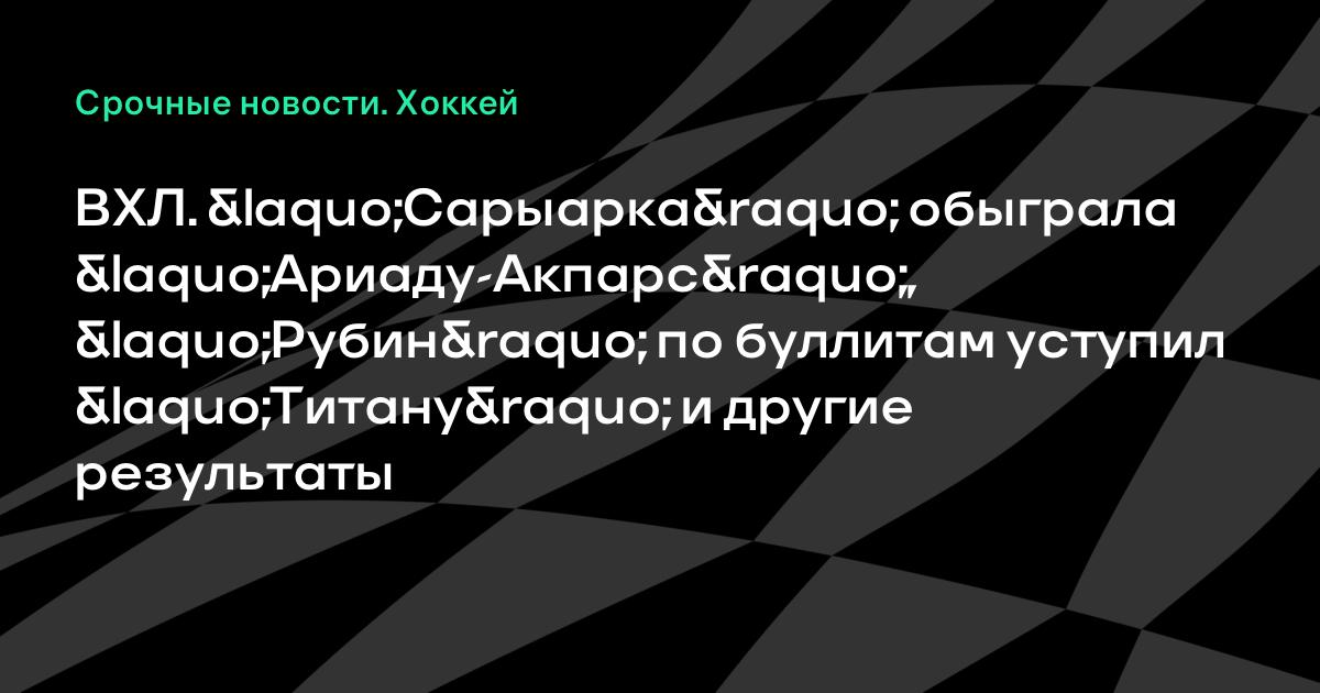ВХЛ. «Сарыарка» обыграла «Ариаду-Акпарс», «Рубин» по буллитам уступил «Титану» и другие результаты