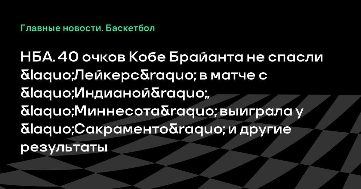 НБА. 40 очков Кобе Брайанта не спасли «Лейкерс» в матче с «Индианой», «Миннесота» выиграла у «Сакраменто» и другие результаты