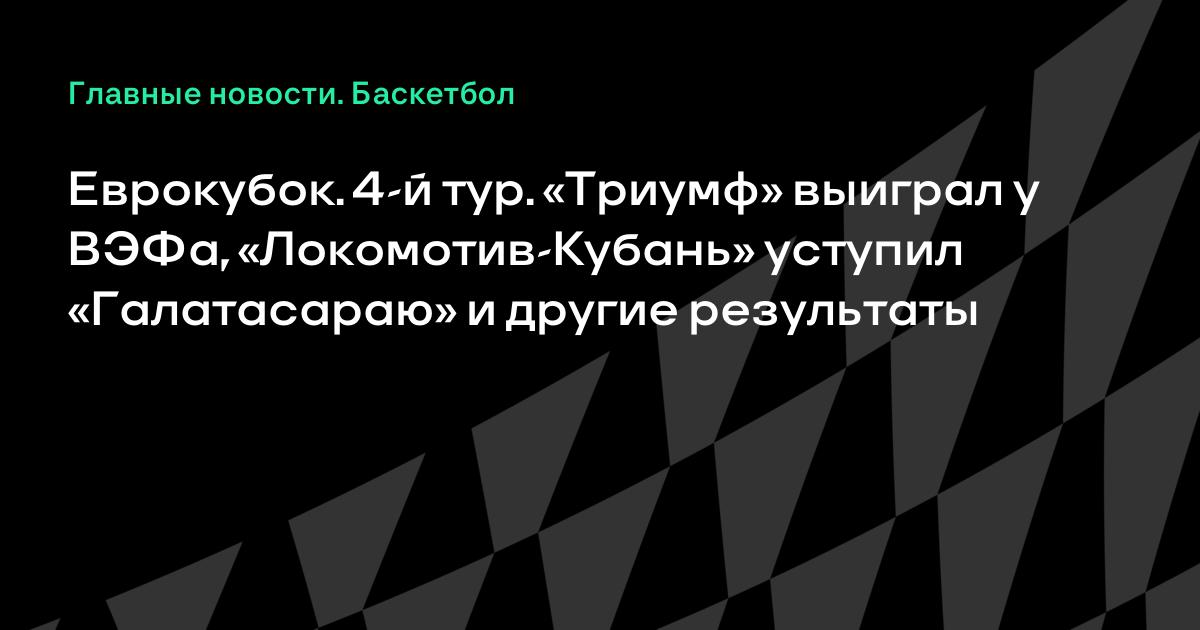 Еврокубок. 4-й тур. «Триумф» выиграл у ВЭФа, «Локомотив-Кубань» уступил «Галатасараю» и другие результаты