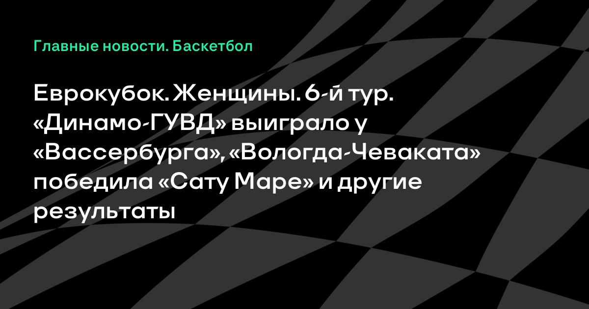 Еврокубок. Женщины. 6-й тур. «Динамо-ГУВД» выиграло у «Вассербурга», «Вологда-Чеваката» победила «Сату Маре» и другие результаты