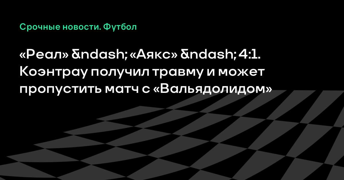 «Реал» – «Аякс» – 4:1. Коэнтрау получил травму и может пропустить матч с «Вальядолидом»