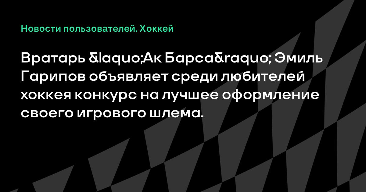 Вратарь «Ак Барса» Эмиль Гарипов объявляет среди любителей хоккея конкурс на лучшее оформление своего игрового шлема.
