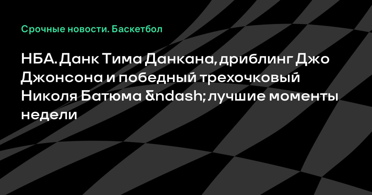 НБА. Данк Тима Данкана, дриблинг Джо Джонсона и победный трехочковый Николя Батюма – лучшие моменты недели