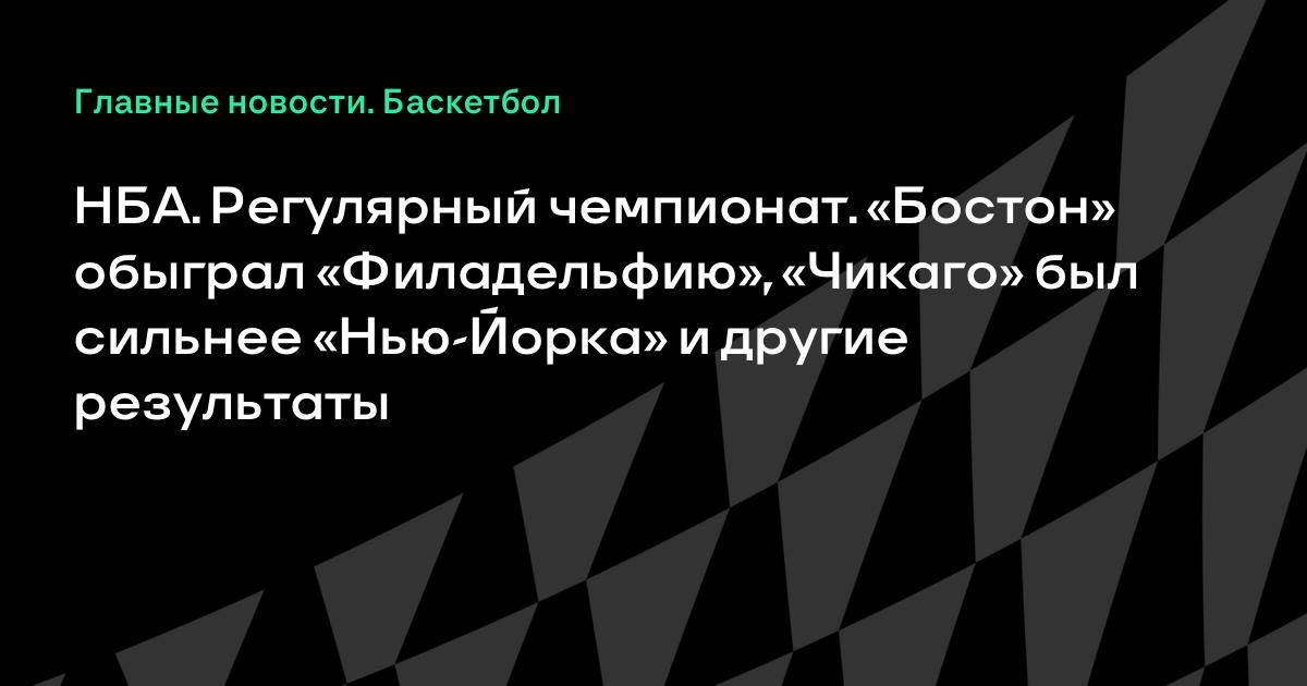 НБА. Регулярный чемпионат. «Бостон» обыграл «Филадельфию», «Чикаго» был сильнее «Нью-Йорка» и другие результаты