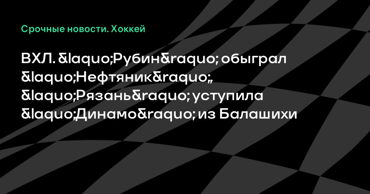 Сегодня в регулярном чемпионате ВХЛ прошли два матча. «Рубин» в серии буллитов одолел «Нефтяник» (5:4 Б), а «Динамо» в Балашихе оказалось сильнее «Рязани» (5:3).