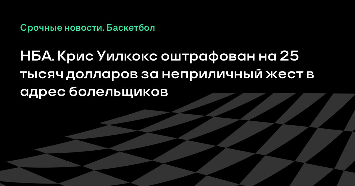Форвард «Бостона» Крис Уилкокс оштрафован лигой на 25 тысяч долларов за неприличный жест в адрес болельщиков, информирует официальный сайт НБА.