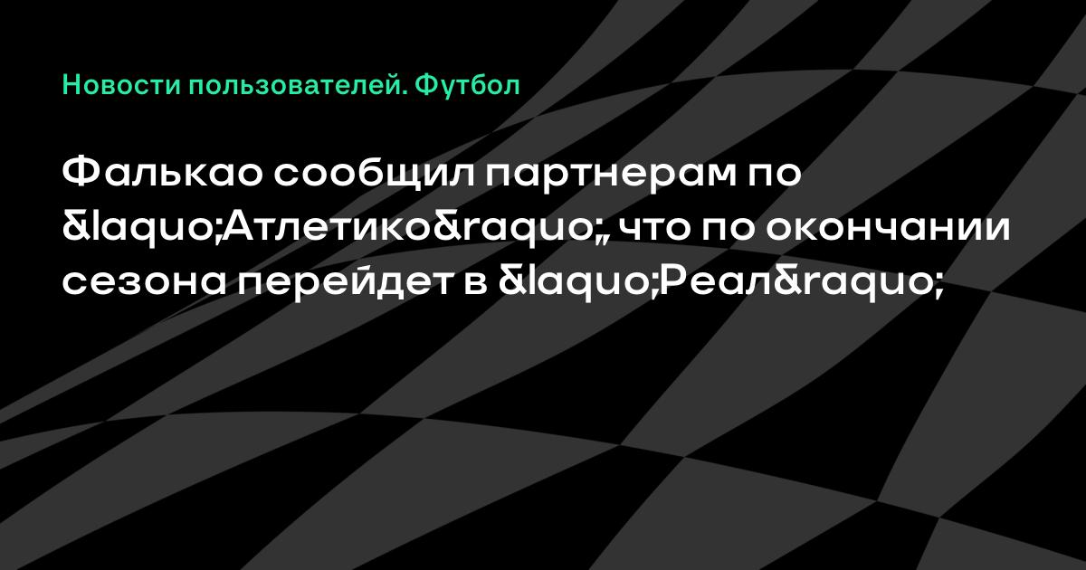 26-летний нападающий «Атлетико» Радамель Фалькао после матча 15-го тура чемпионата Испании с «Депортиво» (6:0), в котором он стал автором пяти мячей, сообщил своим партнерам по команде, что по окончании сезона он перейдет в «Реал».