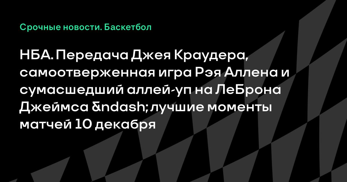 Передача Джея Краудера, самоотверженная игра Рэя Аллена и сумасшедший аллей-уп Норриса Коула на ЛеБрона Джеймса – в Топ-10 моментов матчей 10 декабря.