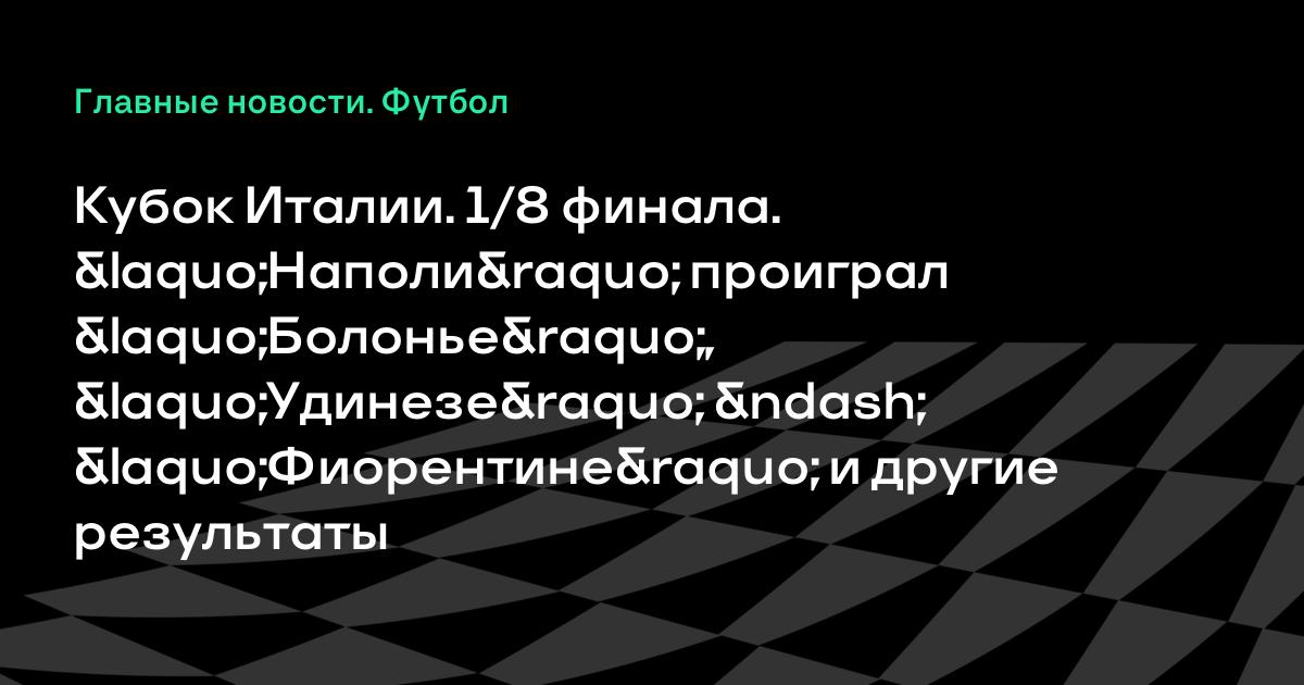 Кубок Италии. 1/8 финала. «Наполи» проиграл «Болонье», «Удинезе» – «Фиорентине» и другие результаты