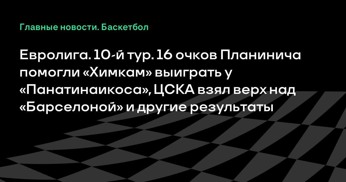 Евролига. 10-й тур. 16 очков Планинича помогли «Химкам» выиграть у «Панатинаикоса», ЦСКА взял верх над «Барселоной» и другие результаты