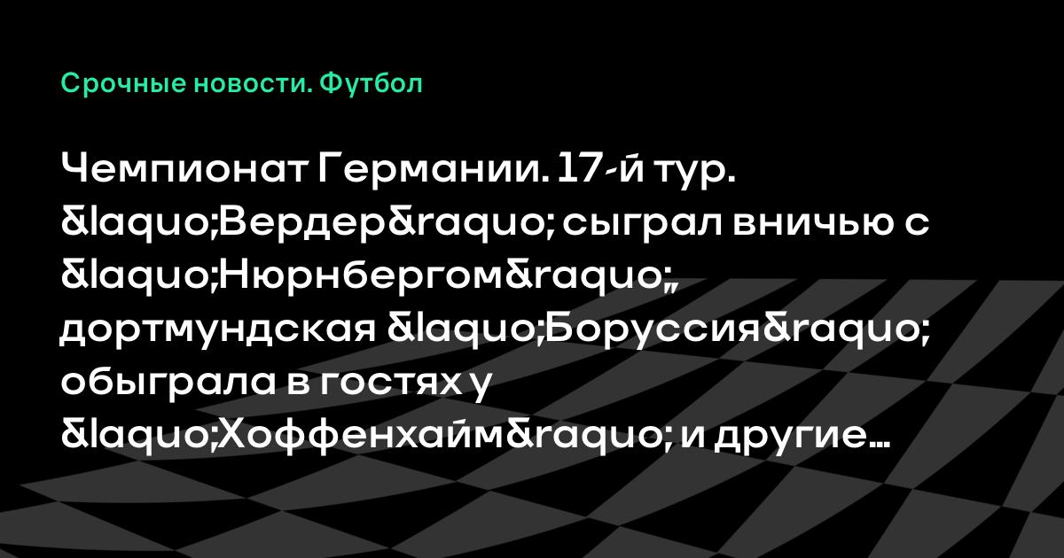 Чемпионат Германии. 17-й тур. «Вердер» сыграл вничью с «Нюрнбергом», дортмундская «Боруссия» обыграла в гостях у «Хоффенхайм» и другие матчи