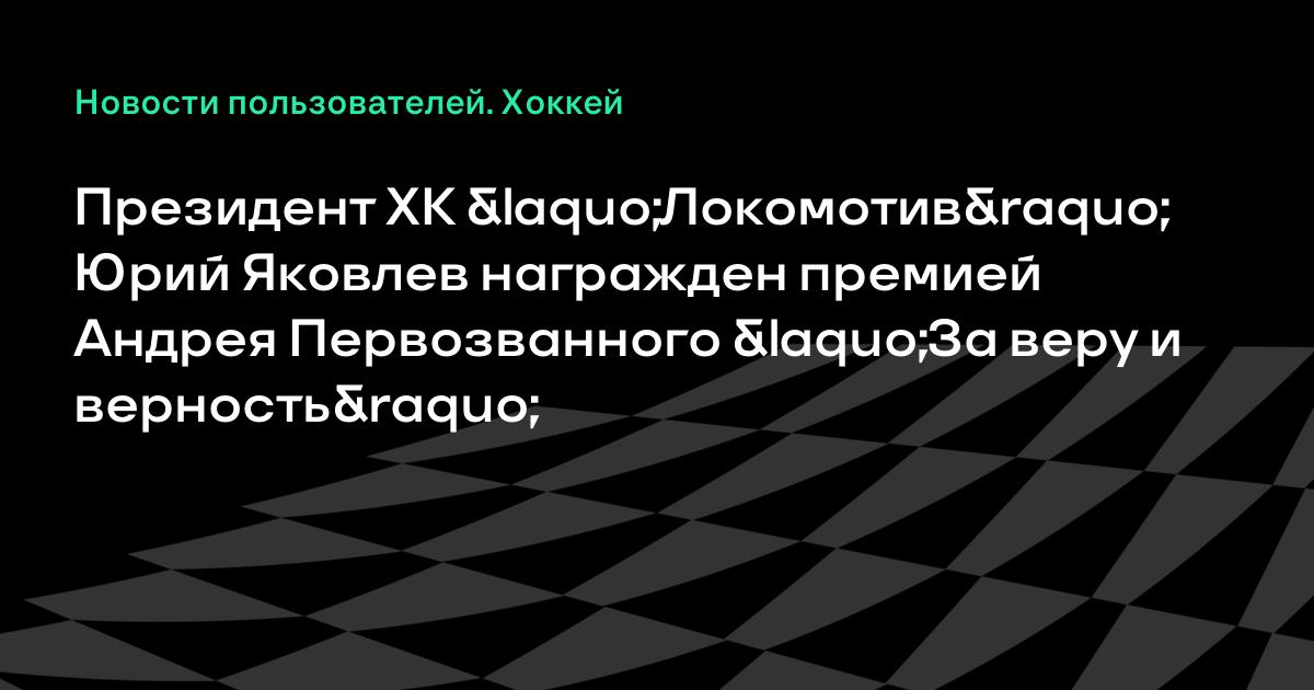 Президент хоккейного клуба «Локомотив» Юрий Яковлев вошел в число девяти лауреатов ежегодной международной общественной премии Андрея Первозванного «За веру и верность».
