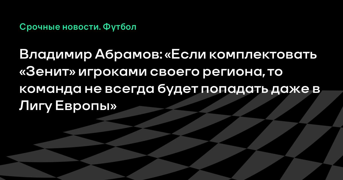 Если, как требуют болельщики, комплектовать «Зенит» футболистами своего региона, то это будет заведомо средний уровень. Команда не всегда будет попадать даже в Лигу Европы, что уж говорить о Лиге чемпионов», – цитирует Абрамова «Советский спорт».