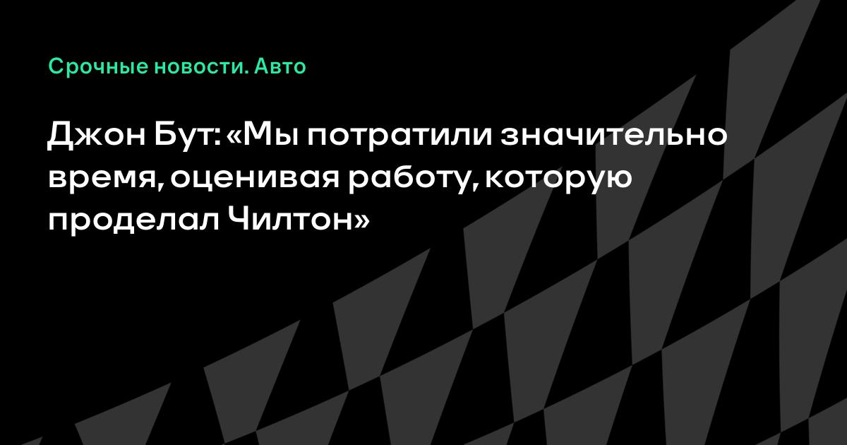 Джон Бут: «Мы потратили значительно время, оценивая работу, которую проделал Чилтон»