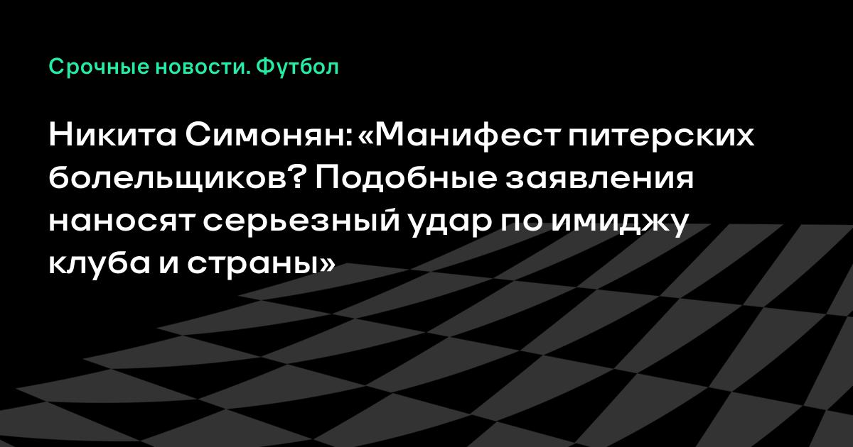Первый вице-президент РФС Никита Симонян прокомментировал манифест болельщиков «Зенита».