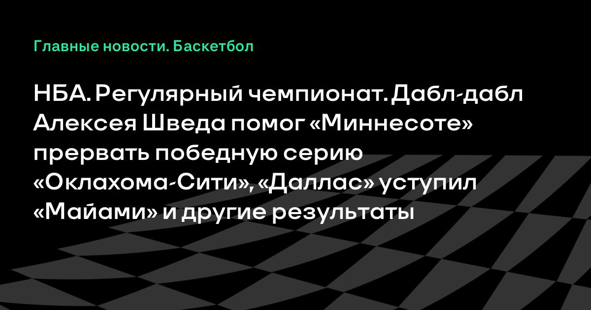 НБА. Регулярный чемпионат. Дабл-дабл Алексея Шведа помог «Миннесоте» прервать победную серию «Оклахома-Сити», «Даллас» уступил «Майами» и другие результаты