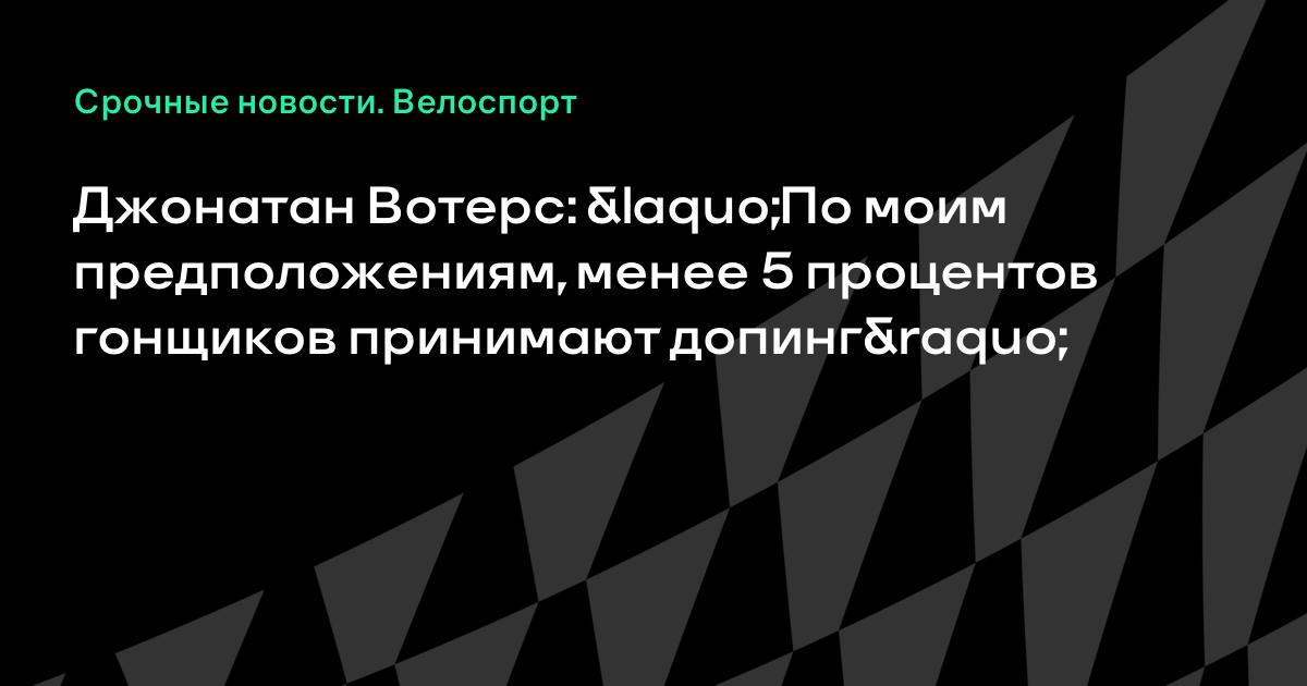 Джонатан Вотерс: «По моим предположениям, менее 5 процентов гонщиков принимают допинг»