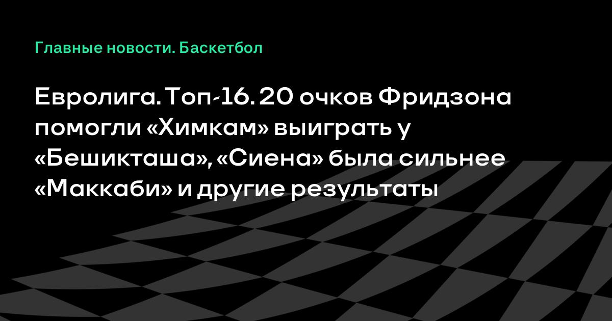 Евролига. Топ-16. 20 очков Фридзона помогли «Химкам» выиграть у «Бешикташа», «Сиена» была сильнее «Маккаби» и другие результаты