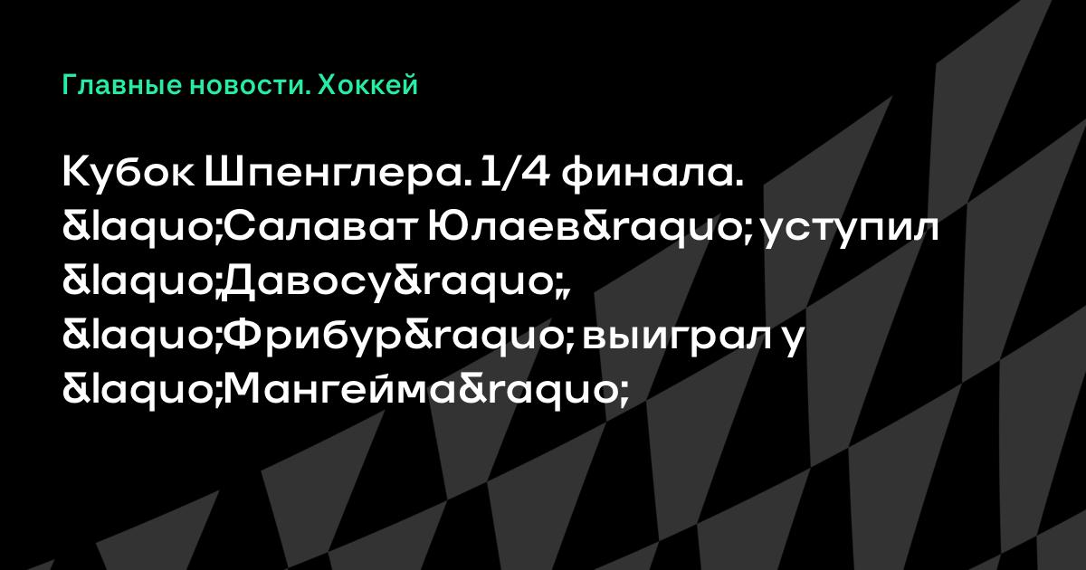 В первом четвертьфинале Кубка Шпенглера «Фрибург» переиграл «Мангейм» (5:2) и вышел в полуфинал, где сыграет со сборной Канады. «Салават Юлаев» уступил «Давосу» (5:7).