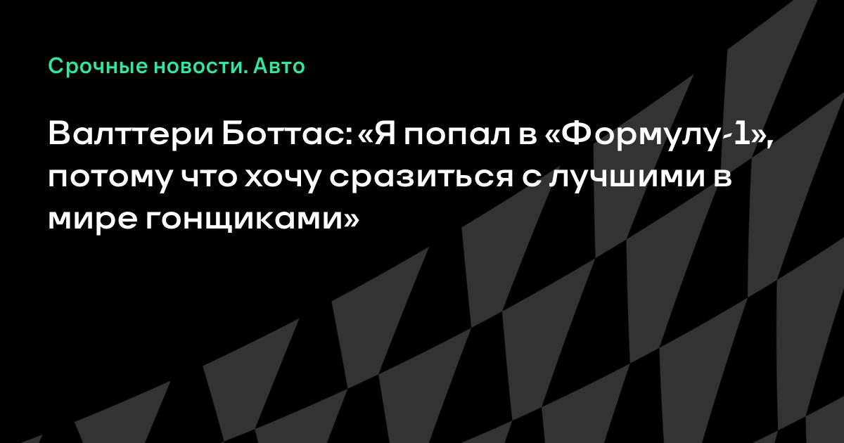 Валттери Боттас: «Я попал в «Формулу-1», потому что хочу сразиться с лучшими в мире гонщиками»