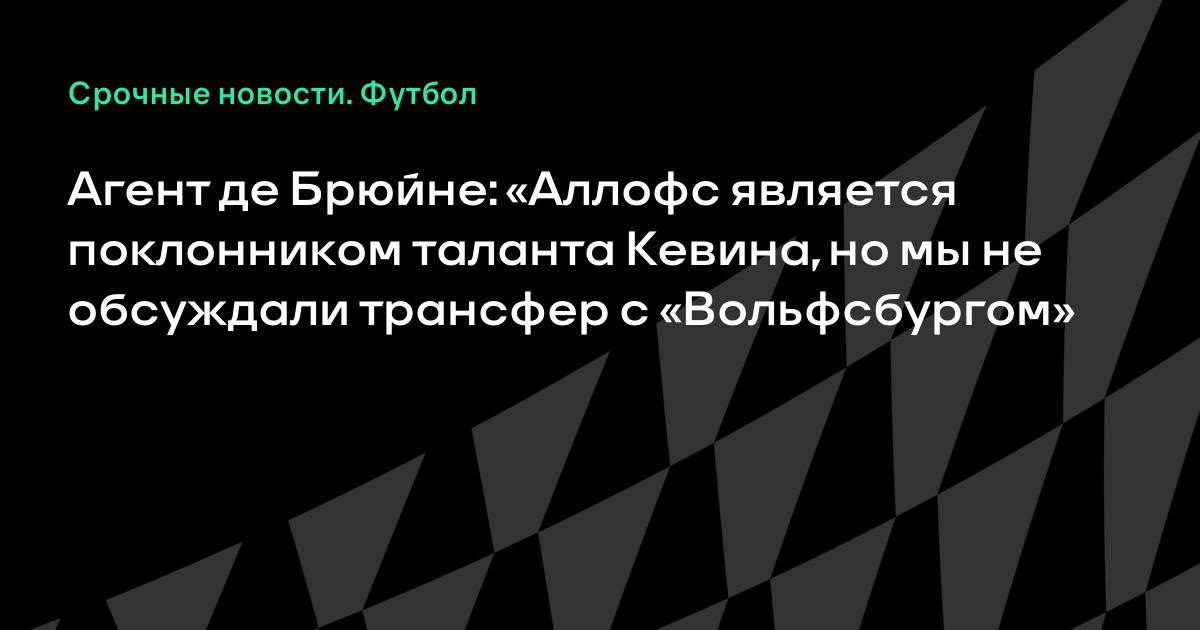 Агент де Брюйне: «Аллофс является поклонником таланта Кевина, но мы не обсуждали трансфер с «Вольфсбургом»