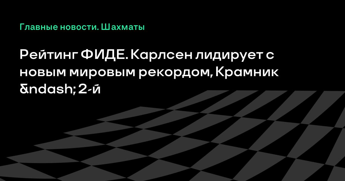 Рейтинг ФИДЕ. Карлсен лидирует с новым мировым рекордом, Крамник – 2-й