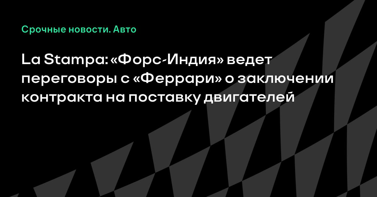 По информации итальянского издания La Stampa, «Форс-Индия» начала переговоры с «Феррари» о заключении контракта на поставку двигателей. В данный момент «Форс-Индия» работает с «Мерседесом», пользуясь двигателями именно немецкой команды, сообщает Motorsport.