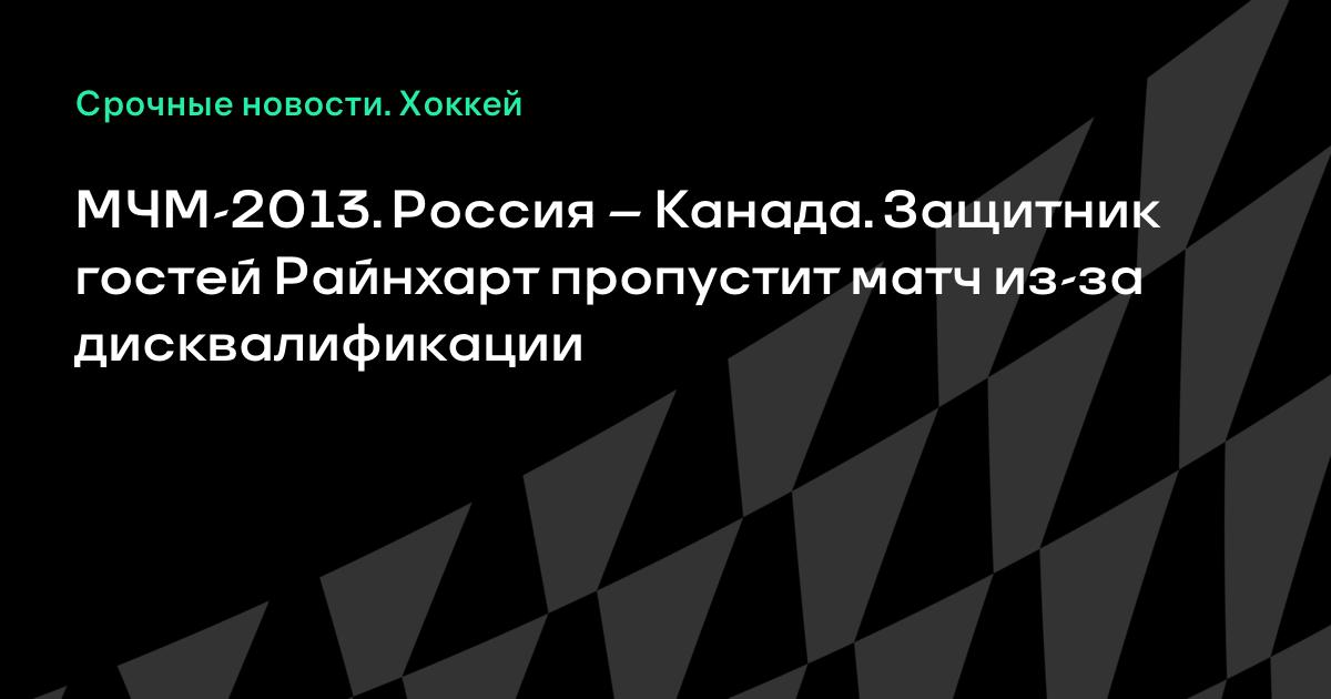 МЧМ-2013. Россия – Канада. Защитник гостей Райнхарт пропустит матч из-за дисквалификации
