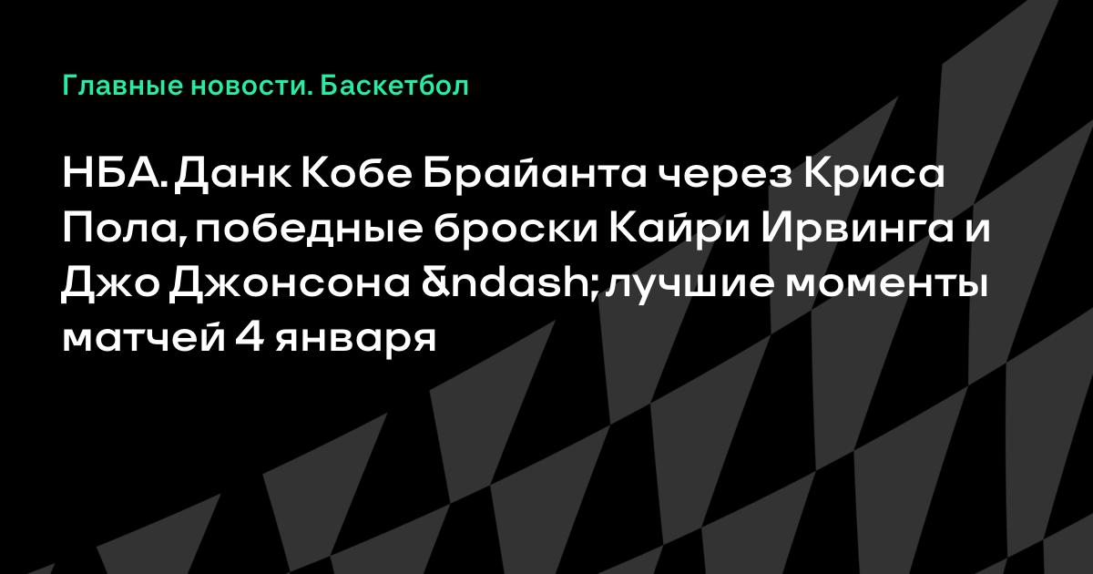 Данк Кобе Брайанта через Криса Пола, победные броски Кайри Ирвинга и Джо Джонсона – лучшие моменты матчей 4 января.