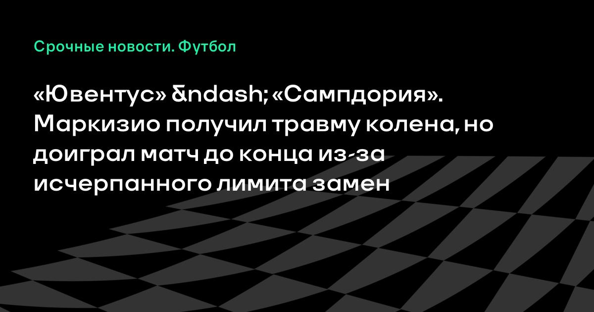 Полузащитник «Ювентуса» Клаудио Маркизио получил травму колена в проигранном матче 19-го тура серии А «Сампдории» (1:2).