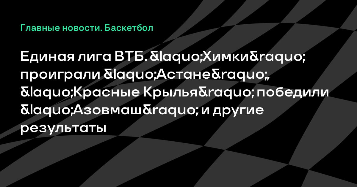 Единая лига ВТБ. «Химки» проиграли «Астане», «Красные Крылья» победили «Азовмаш» и другие результаты