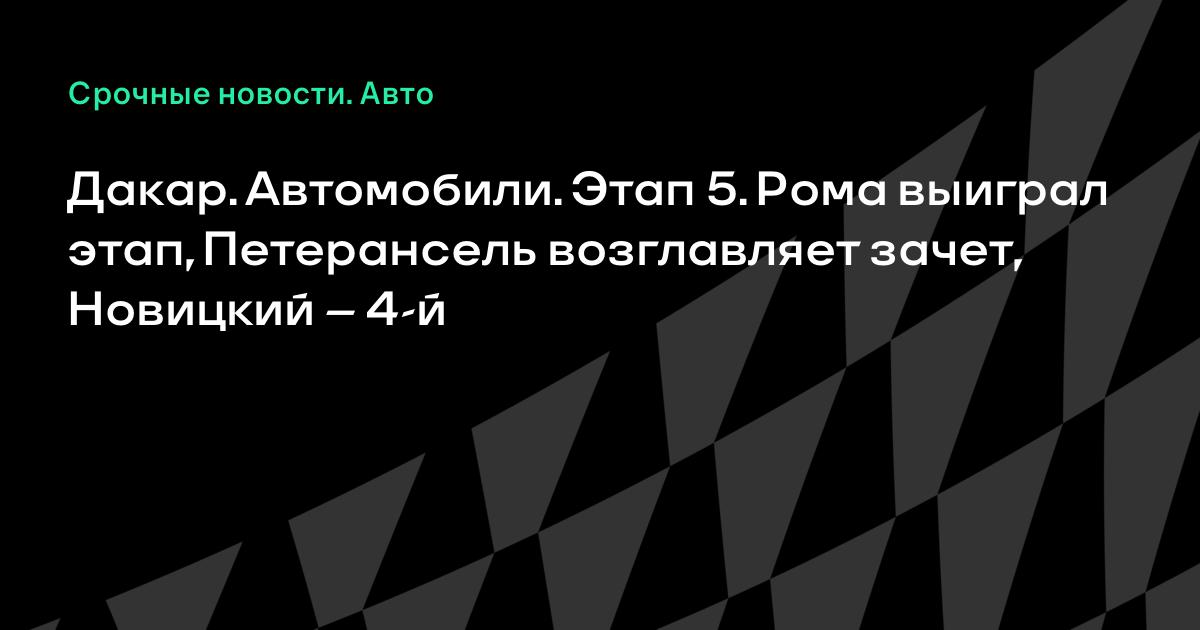 Дакар. Автомобили. Этап 5. Рома выиграл этап, Петерансель возглавляет зачет, Новицкий – 4-й