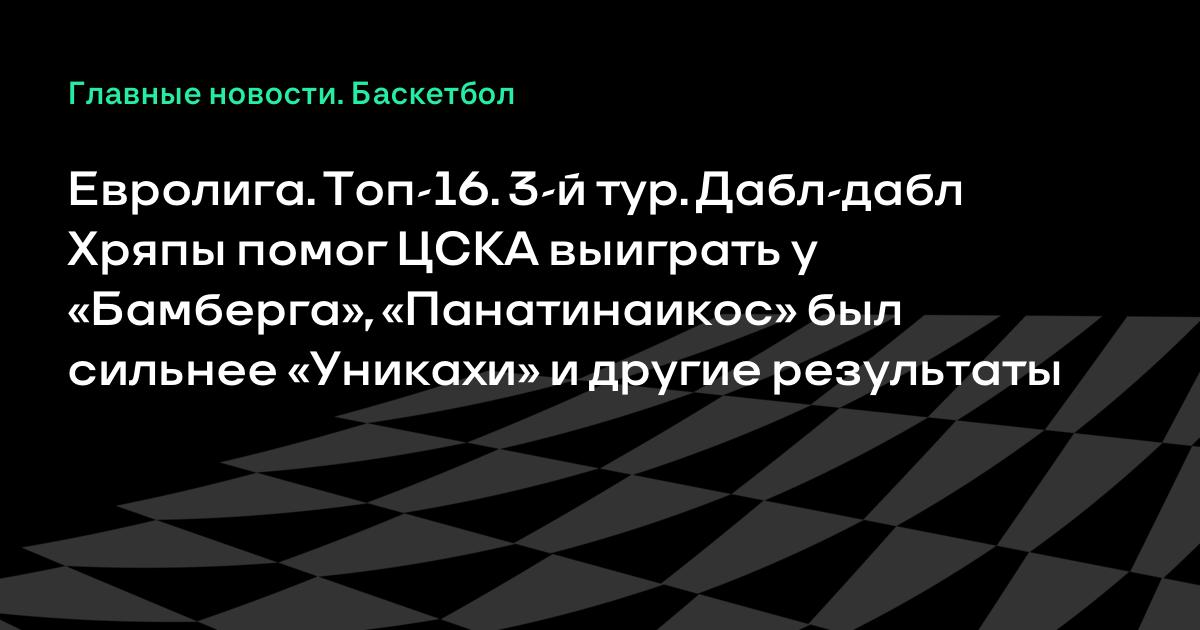 Евролига. Топ-16. 3-й тур. Дабл-дабл Хряпы помог ЦСКА выиграть у «Бамберга», «Панатинаикос» был сильнее «Уникахи» и другие результаты