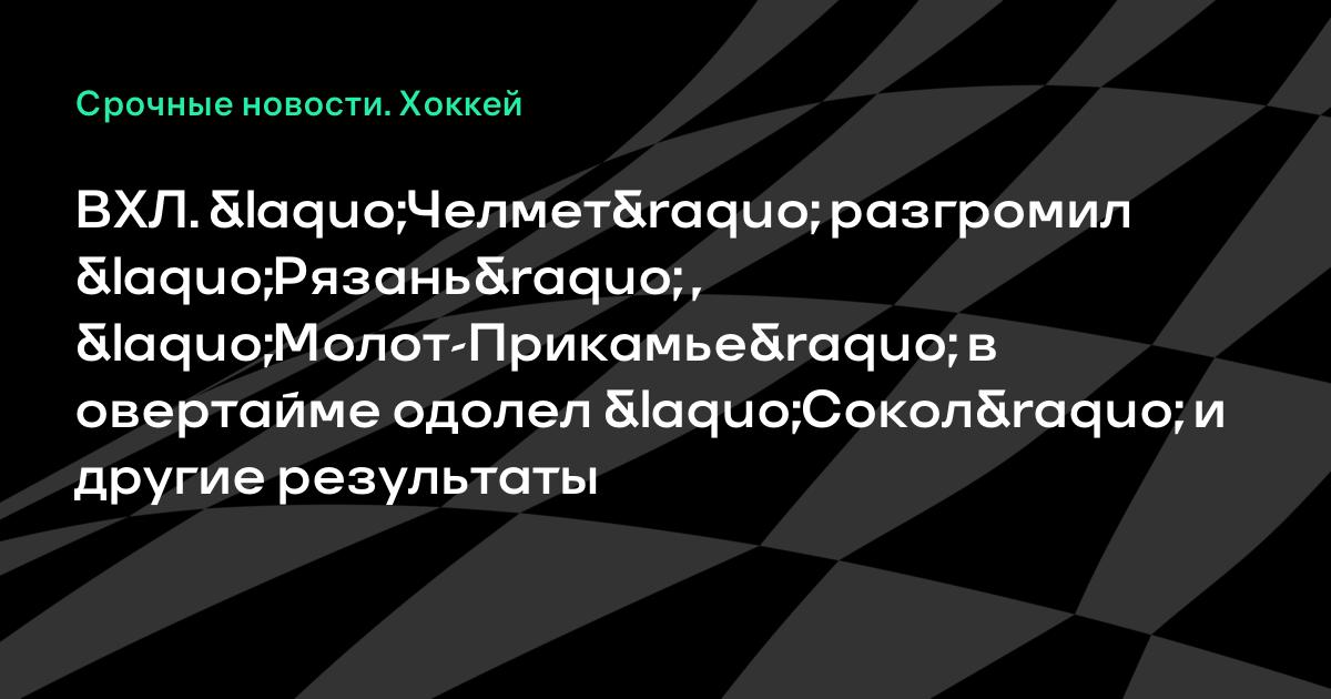 ВХЛ. «Челмет» разгромил «Рязань» , «Молот-Прикамье» в овертайме одолел «Сокол» и другие результаты