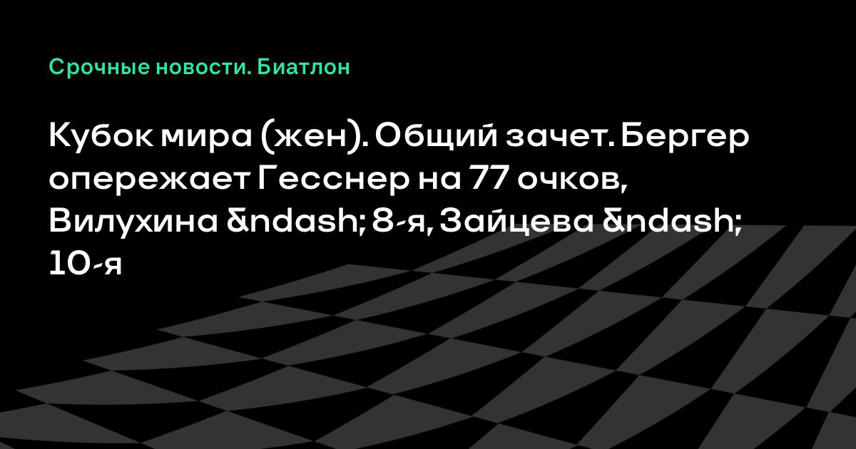 Кубок мира (жен). Общий зачет. Бергер опережает Гесснер на 77 очков, Вилухина – 8-я, Зайцева – 10-я