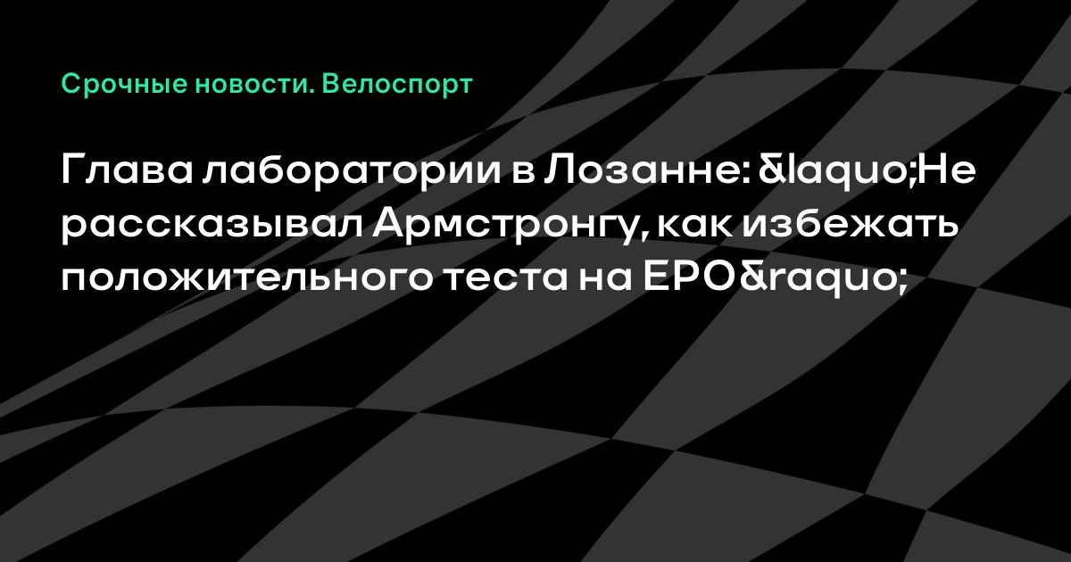 Глава лаборатории в Лозанне: «Не рассказывал Армстронгу, как избежать положительного теста на EPO»