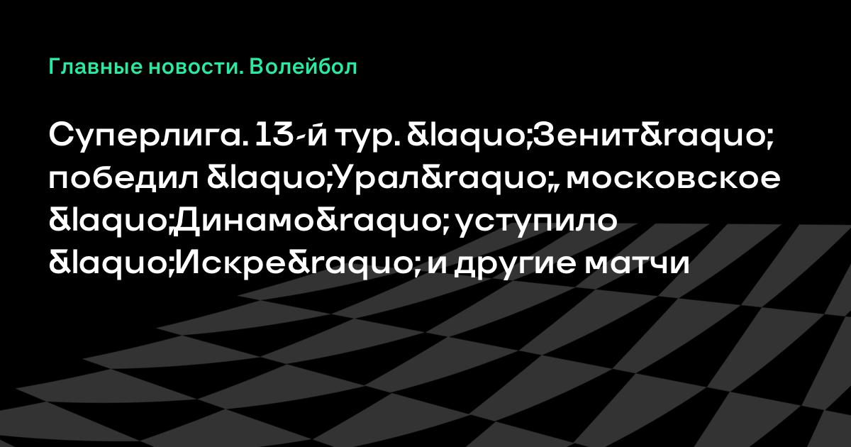 Суперлига. 13-й тур. «Зенит» победил «Урал», московское «Динамо» уступило «Искре» и другие матчи
