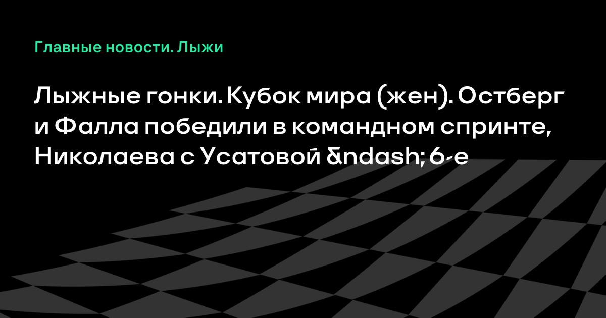 Лыжные гонки. Кубок мира (жен). Остберг и Фалла победили в командном спринте, Николаева с Усатовой – 6-е