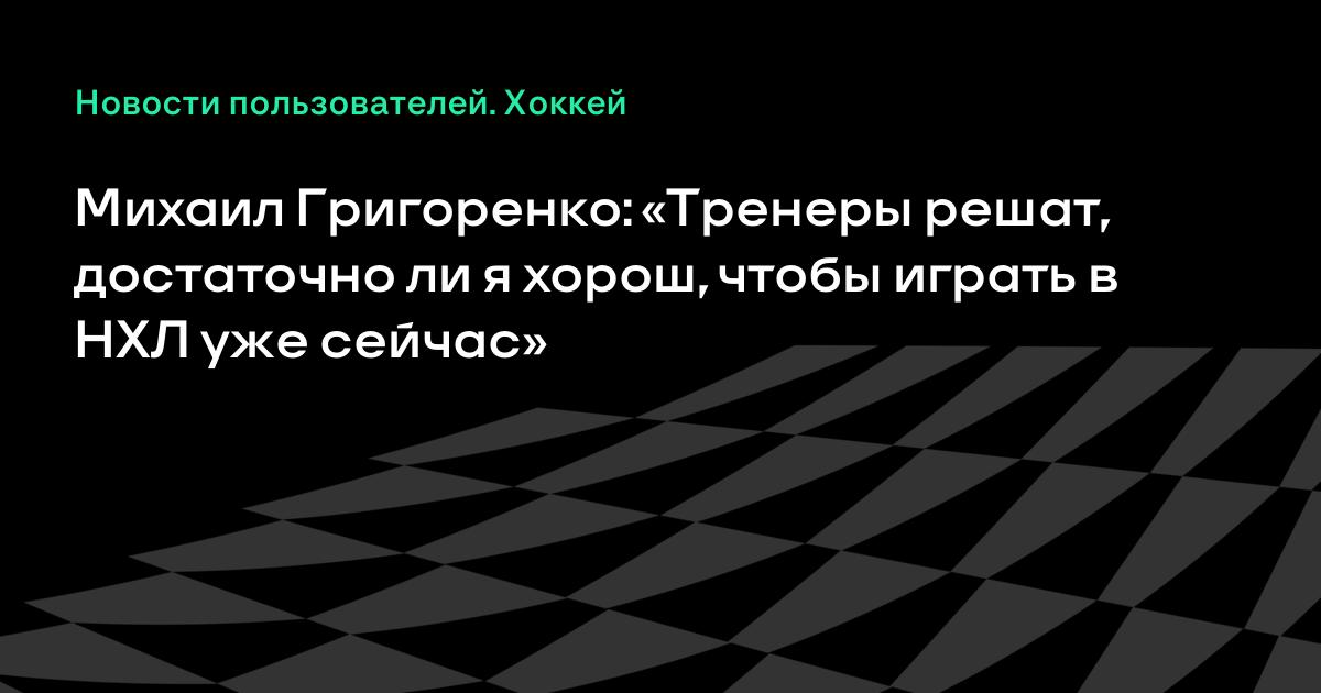 Михаил Григоренко: «Тренеры решат, достаточно ли я хорош, чтобы играть в НХЛ уже сейчас»