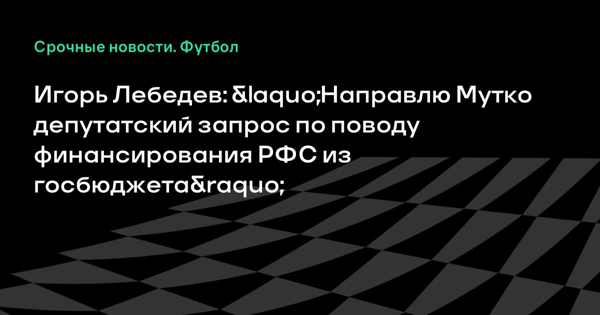 Заместитель председателя Государственной Думы Игорь Лебедев рассказал о намерении написать запрос министру спорта Виталию Мутко по поводу государственного финансирования РФС.