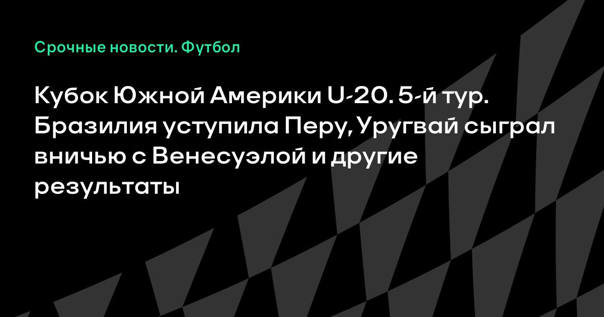 Кубок Южной Америки U-20. 5-й тур. Бразилия уступила Перу, Уругвай сыграл вничью с Венесуэлой и другие результаты
