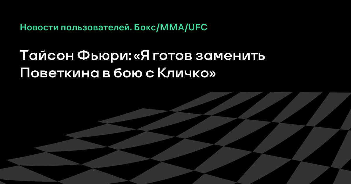 Британский супертяжеловес Тайсон Фьюри (20–0, 14 КО) выразил готовность выйти в ринг против украинца Владимира Кличко (59–3, 51 КО) в случае, если россиянин Александр Поветкин (25–0, 17 КО) снова откажется от боя с Владимиром.