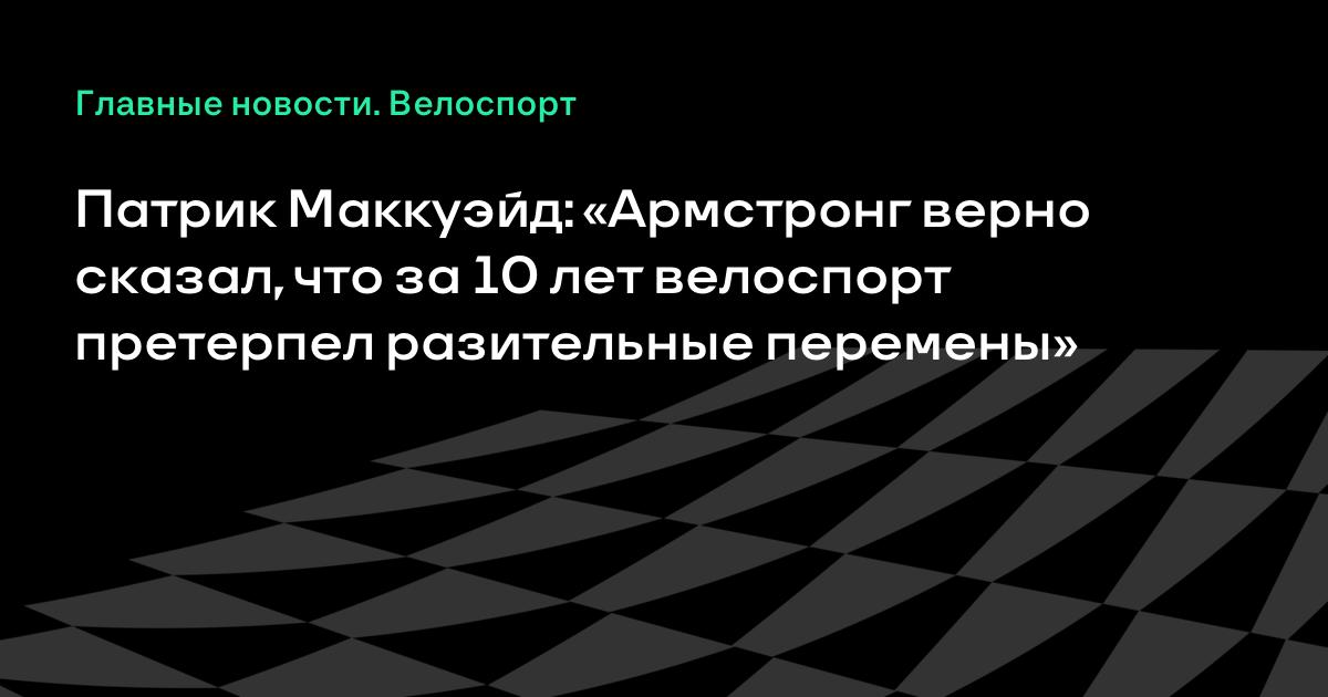 Патрик Маккуэйд: «Армстронг верно сказал, что за 10 лет велоспорт претерпел разительные перемены»