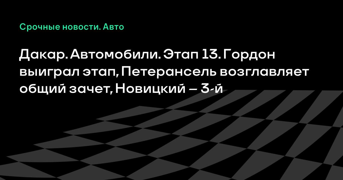 Дакар. Автомобили. Этап 13. Гордон выиграл этап, Петерансель возглавляет общий зачет, Новицкий – 3-й