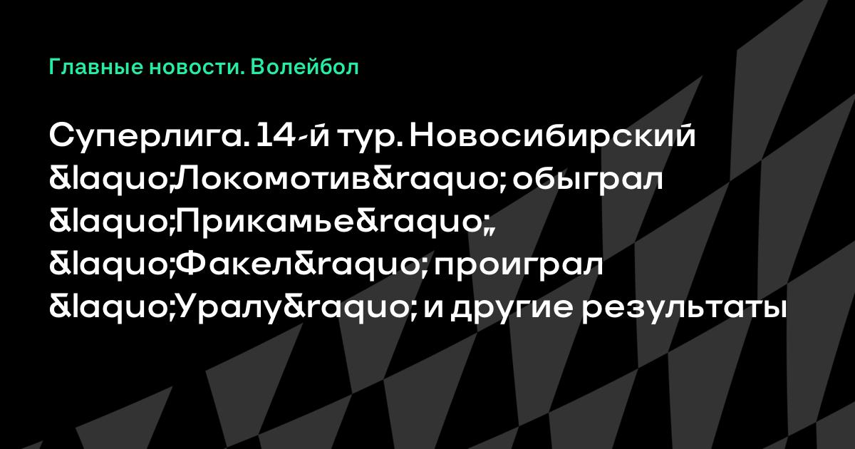Сегодня в мужской волейбольной Суперлиге прошел 14-й тур. Новосибирский «Локомотив» обыграл «Прикамье» (3-1), «Факел» уступил «Уралу» (2-3).