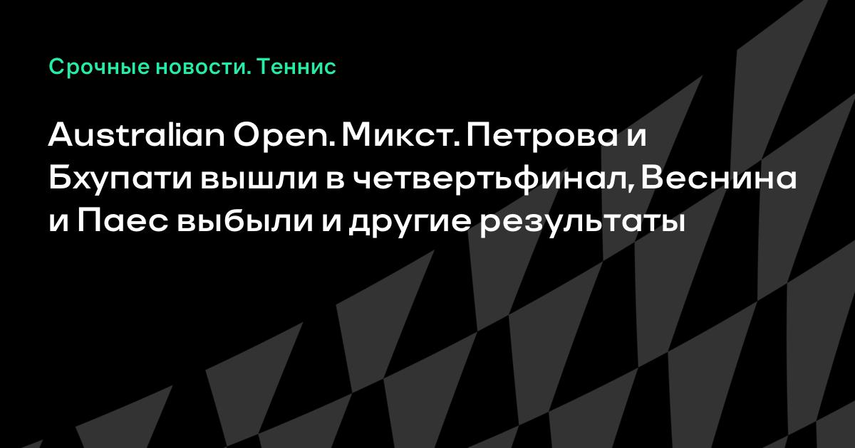 Australian Open. Микст. Петрова и Бхупати вышли в четвертьфинал, Веснина и Паес выбыли и другие результаты