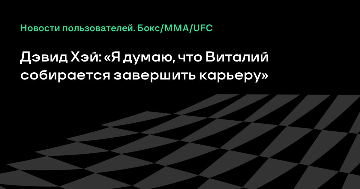 Дэвид Хэй: «Я думаю, что Виталий собирается завершить карьеру»